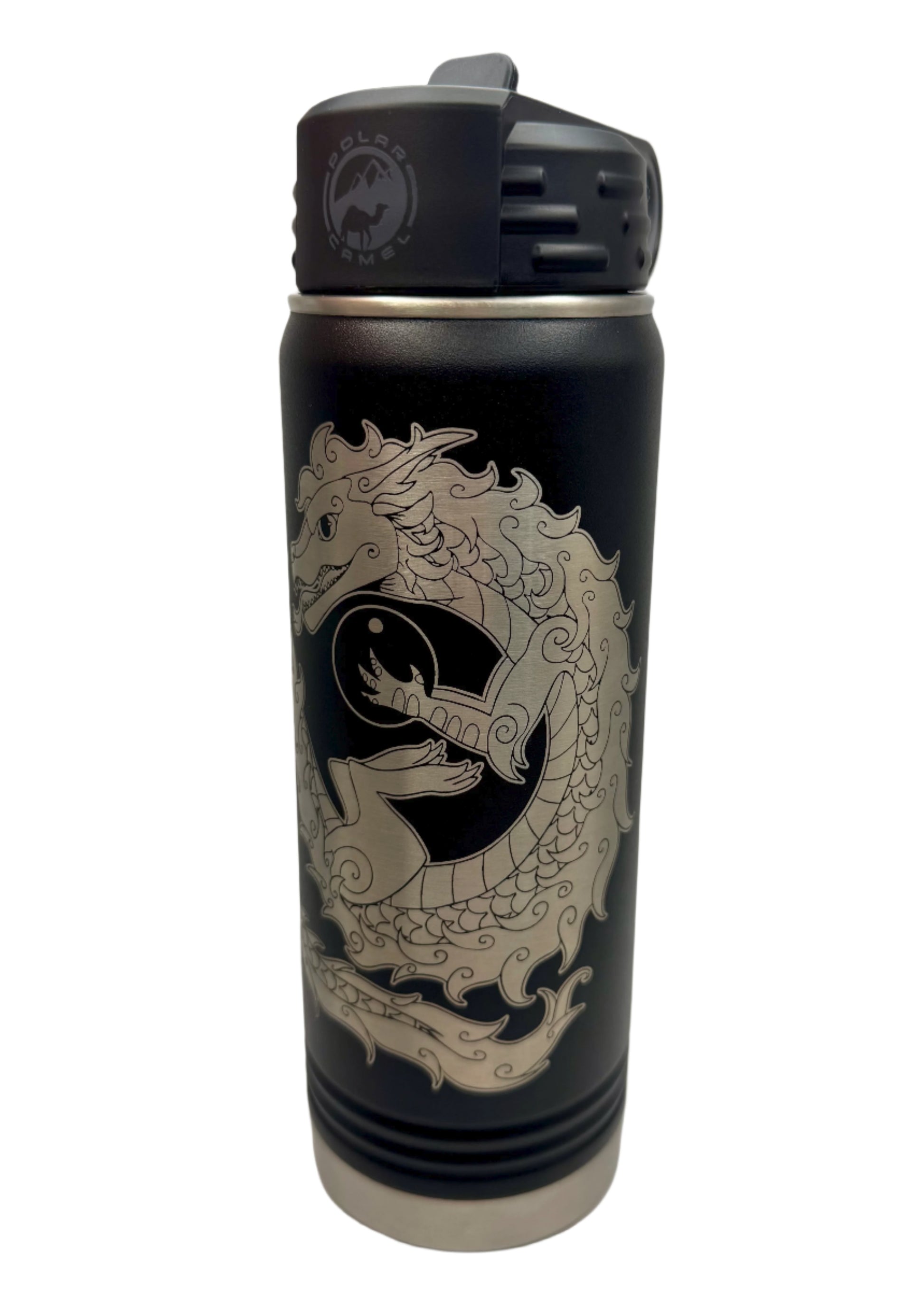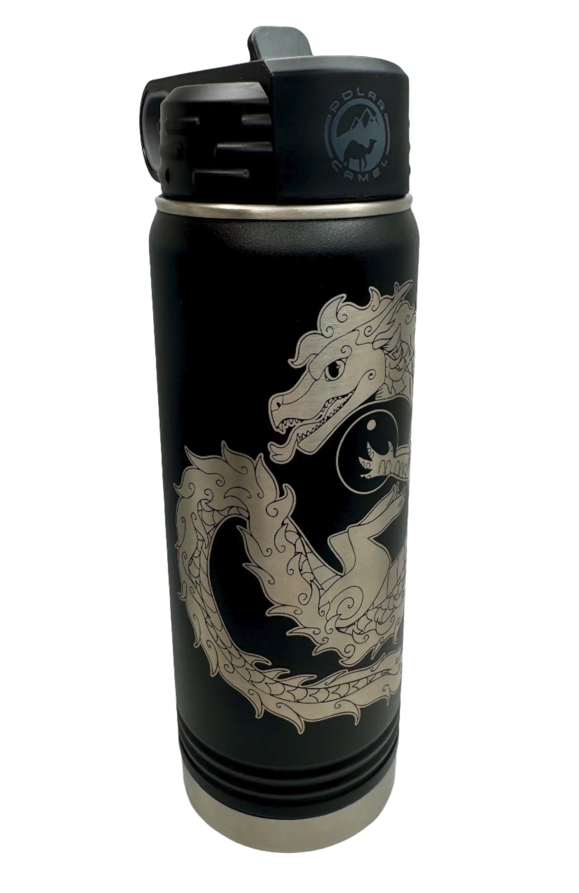 20oz insulated water bottle. Keeps your hots hot and your colds cold.