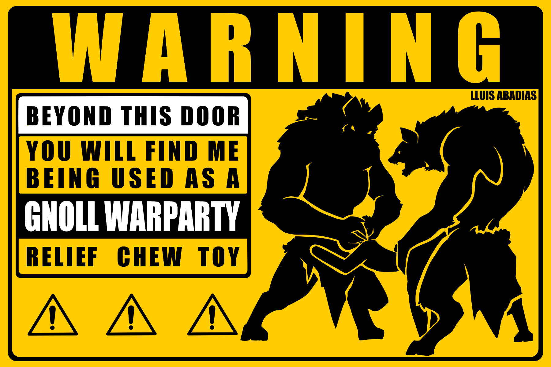 Warning! Beyond this door you will find me being used as a gnoll warparty relief chew toy!