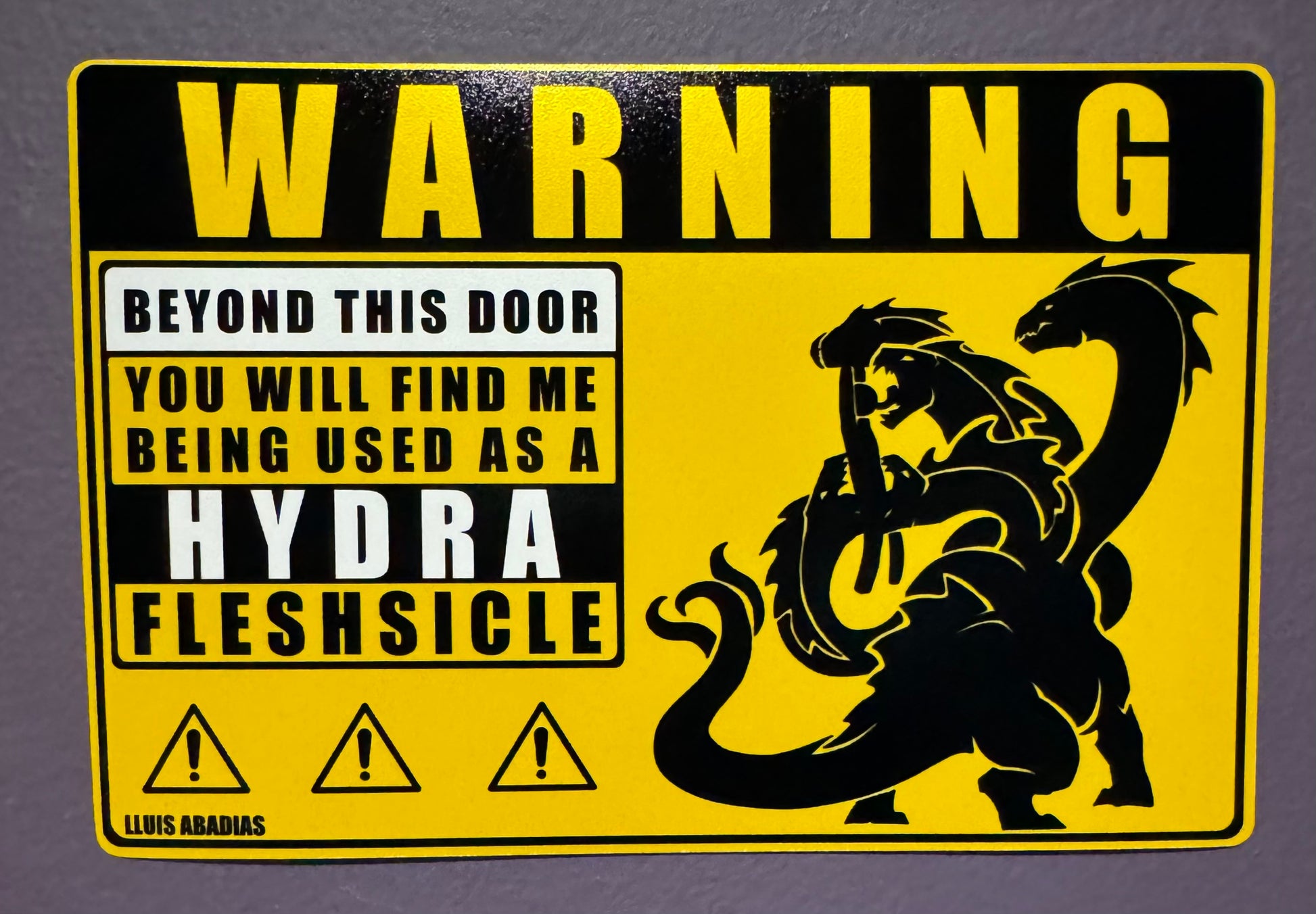 Warning! Beyond this door you will find me being used as a hydra fleshsicle.