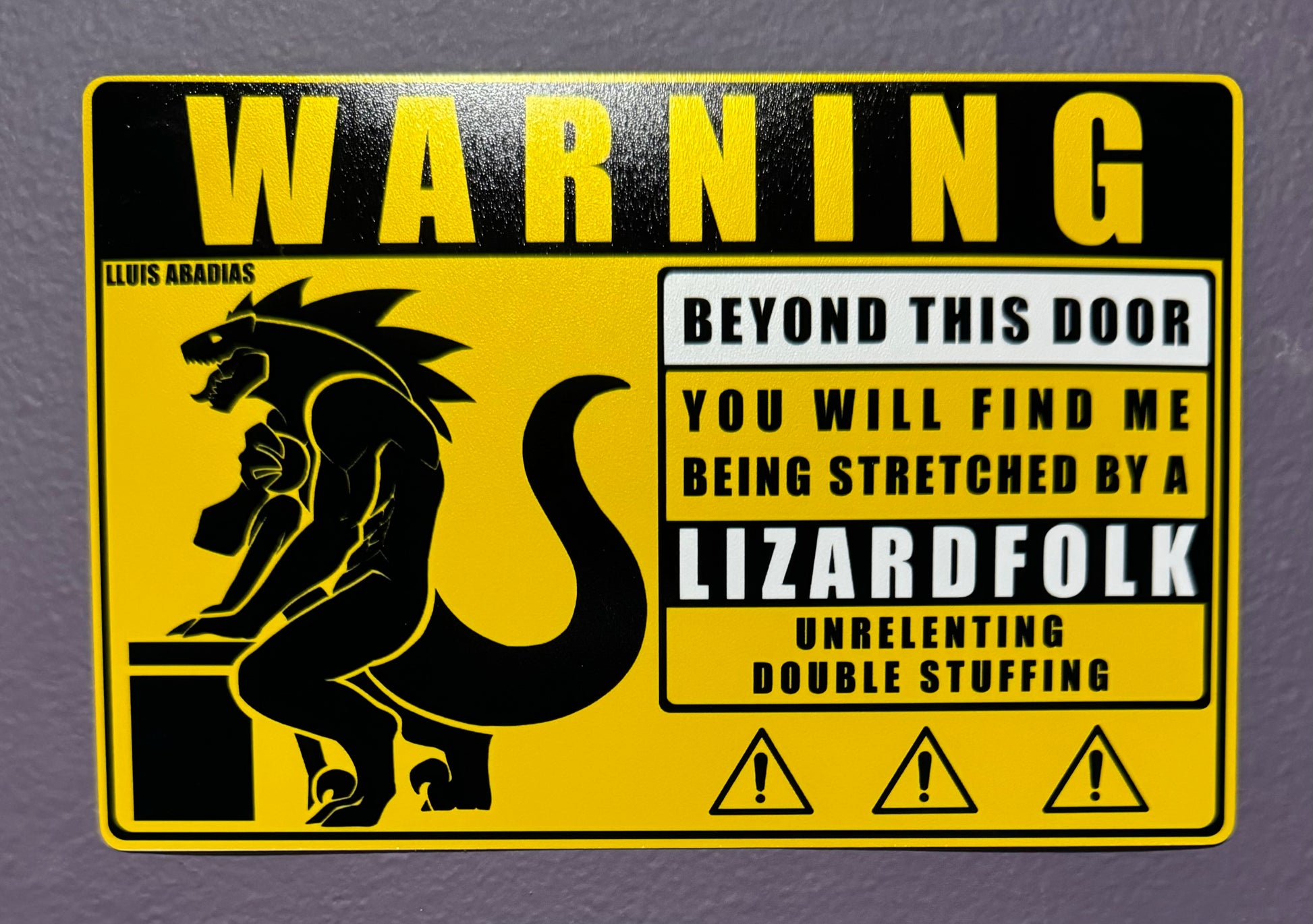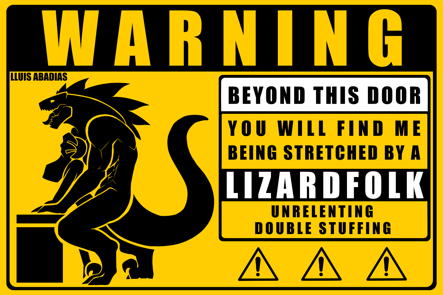 Warning! Beyond this door you will find me being stretched by a lizardfolk, unrelenting double stuffing.